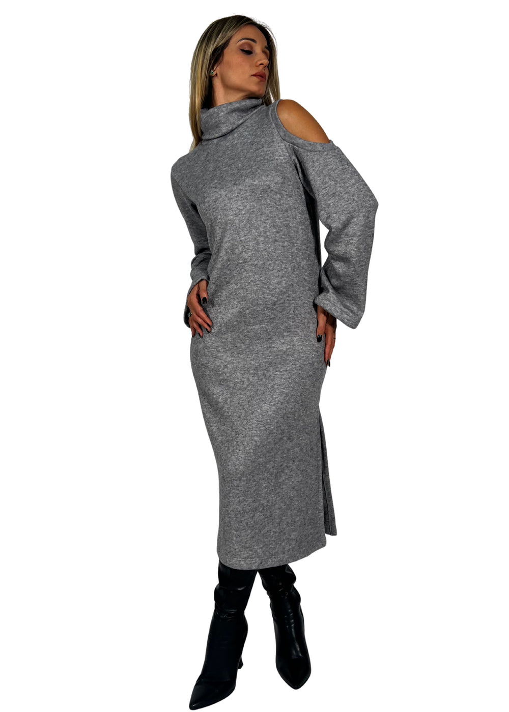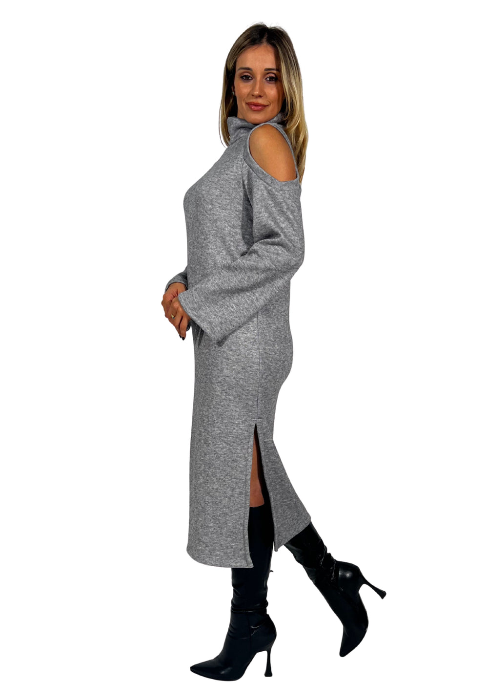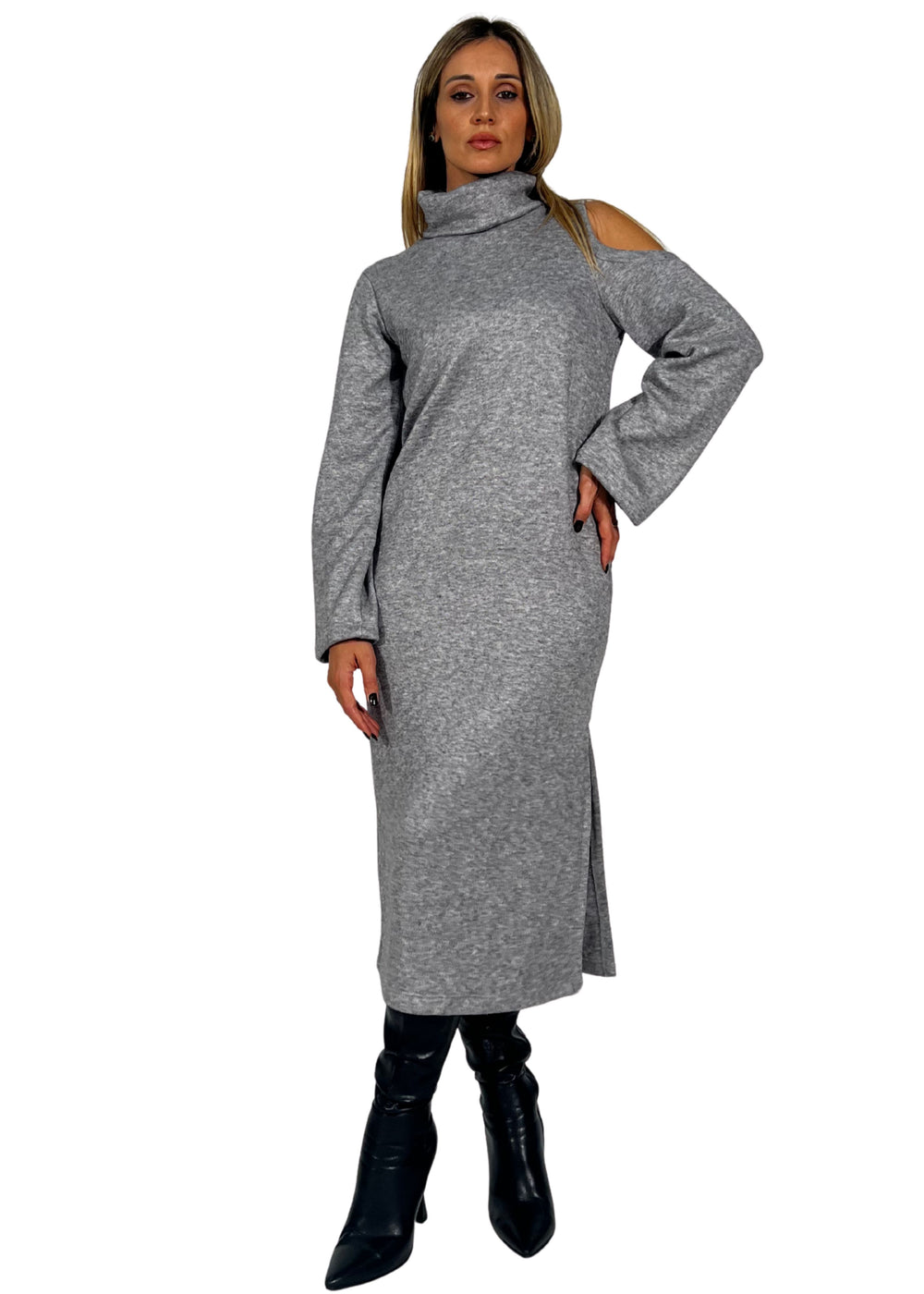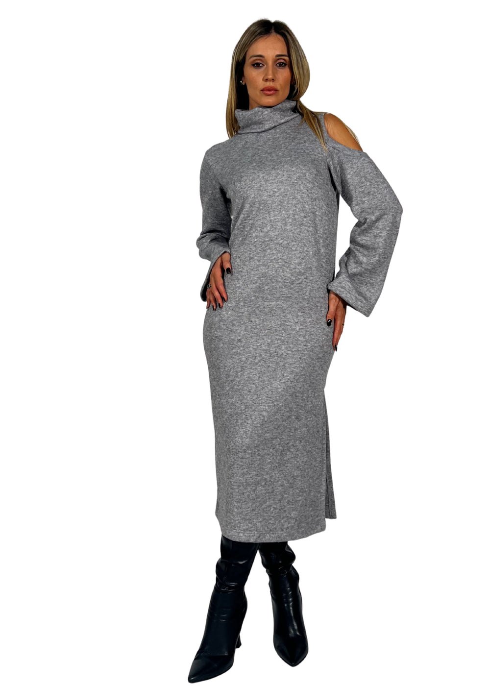 • Abito lungo in morbida lanetta mélange, caldo e confortevole.