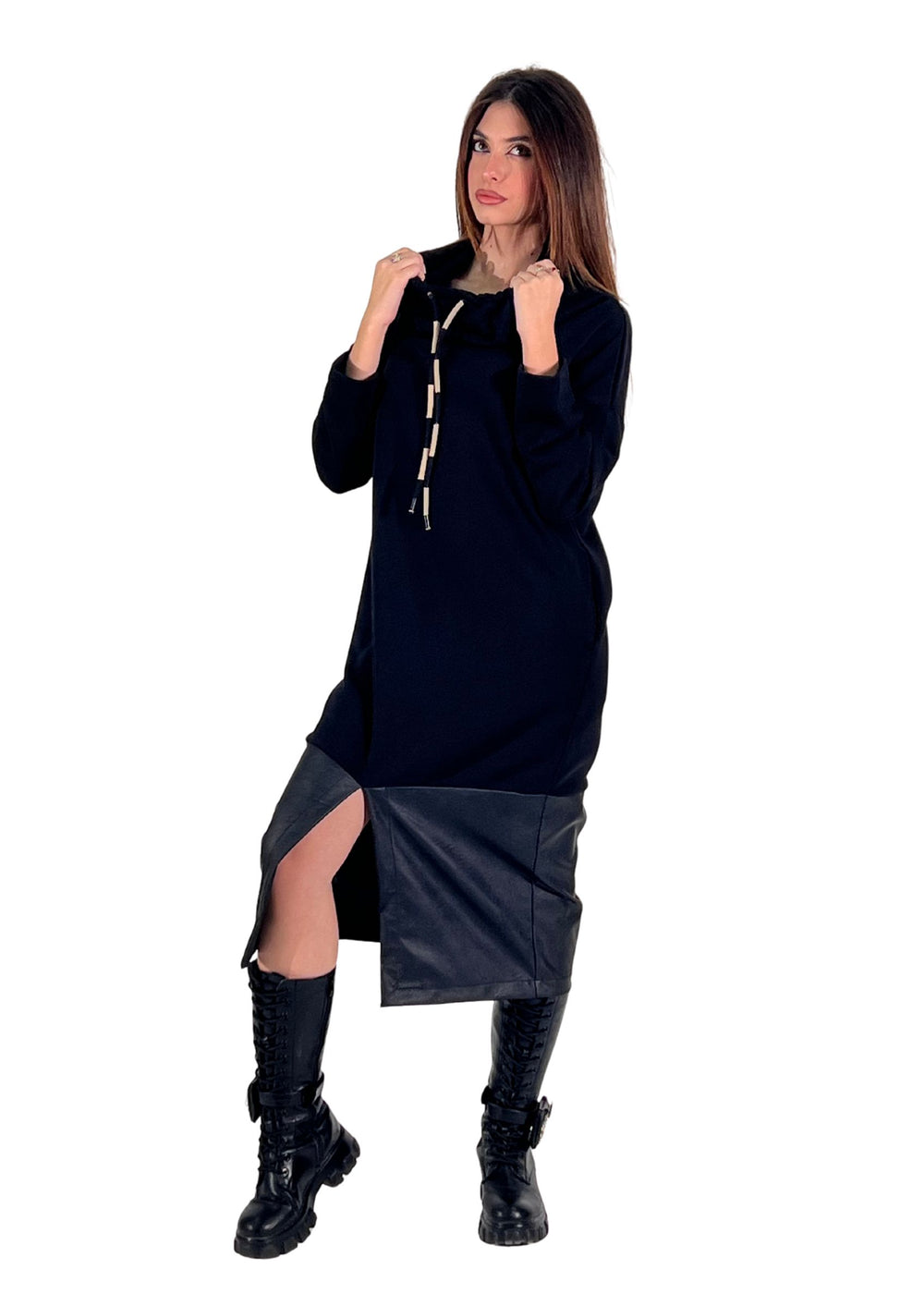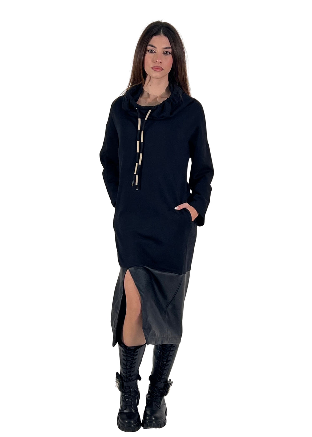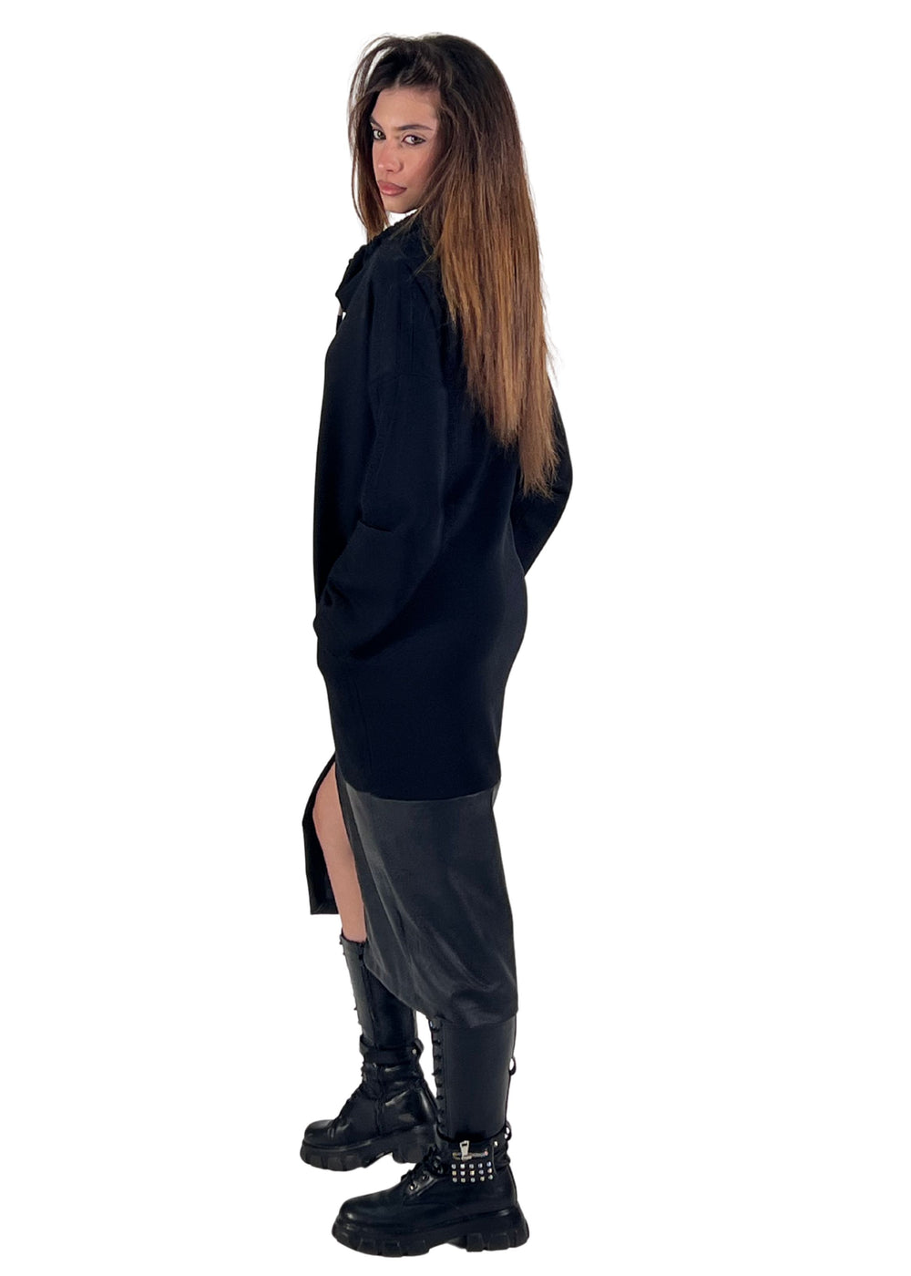 • Dettagli: Spacco frontale con inserti in ecopelle per un tocco grintoso