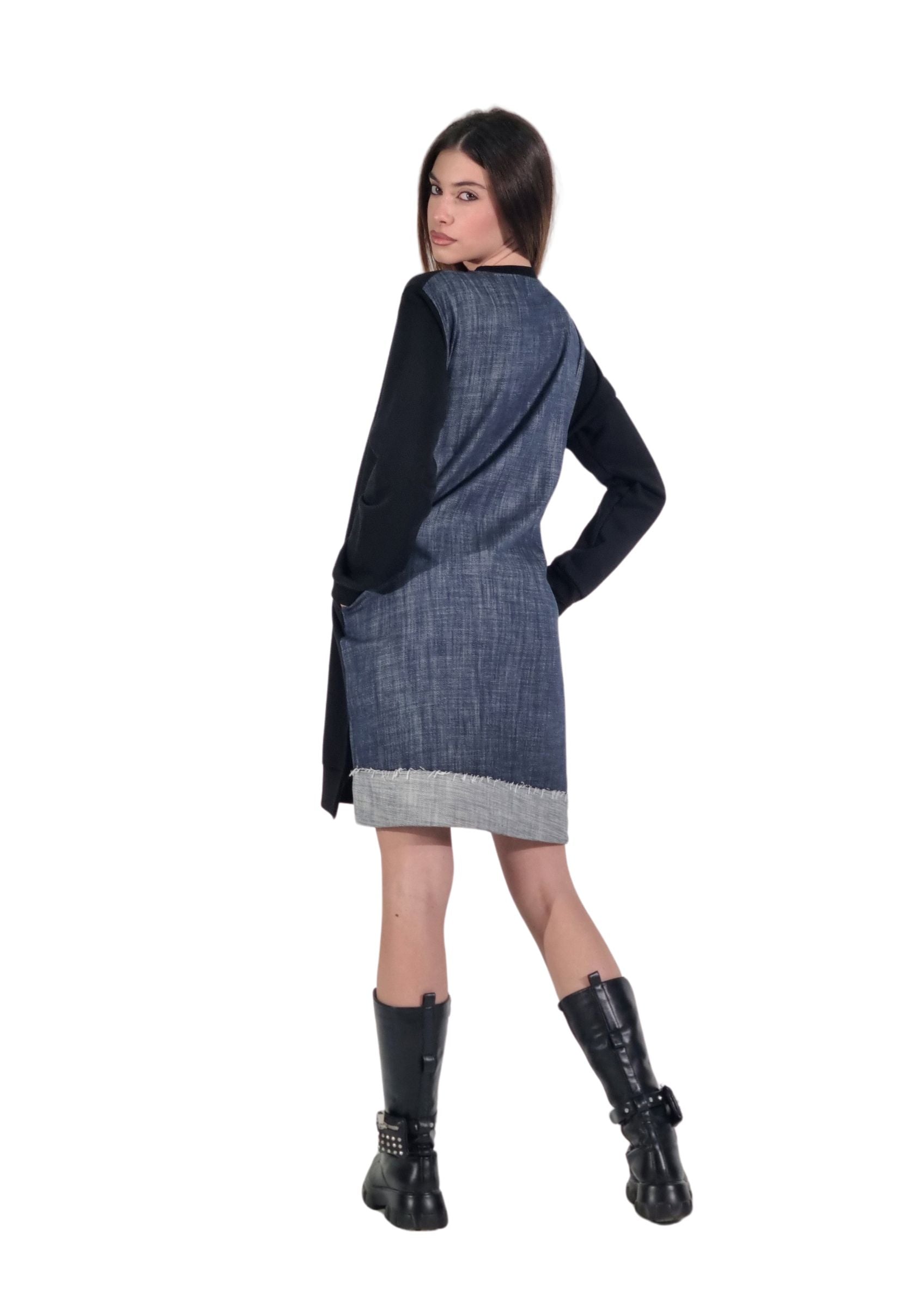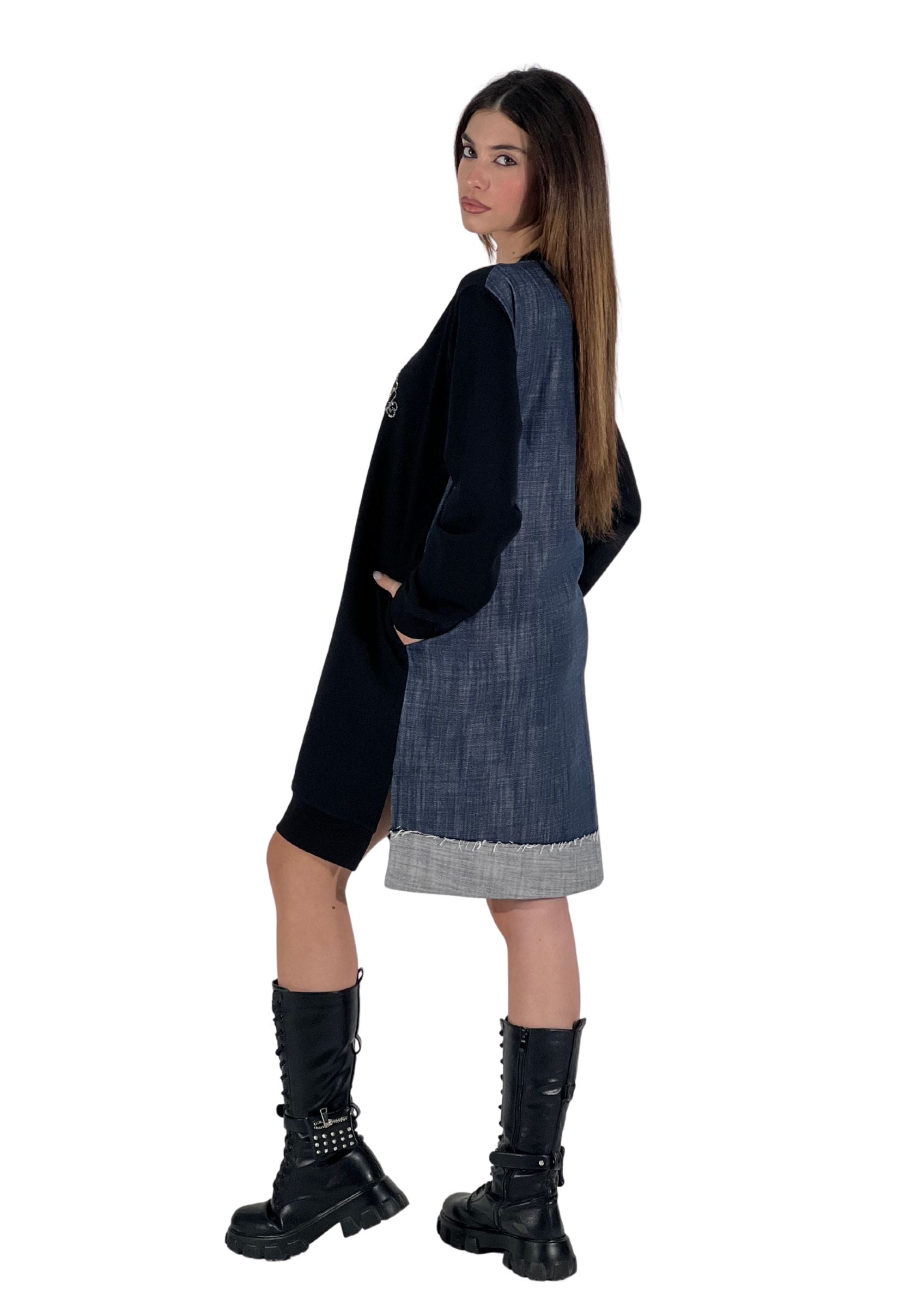 L’abito Vanity è un capo dallo stile moderno e versatile, caratterizzato da un design che combina materiali diversi per un look unico.