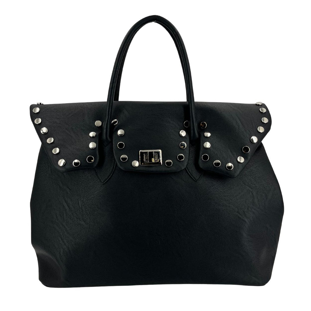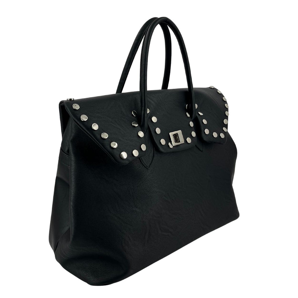• Design: Patta con borchie decorative argentate, fermaglio a stella in metallo
