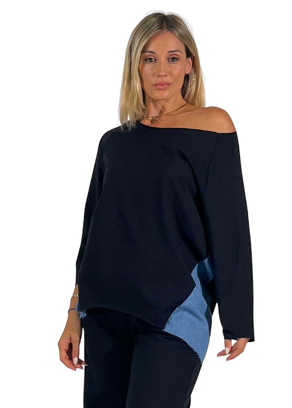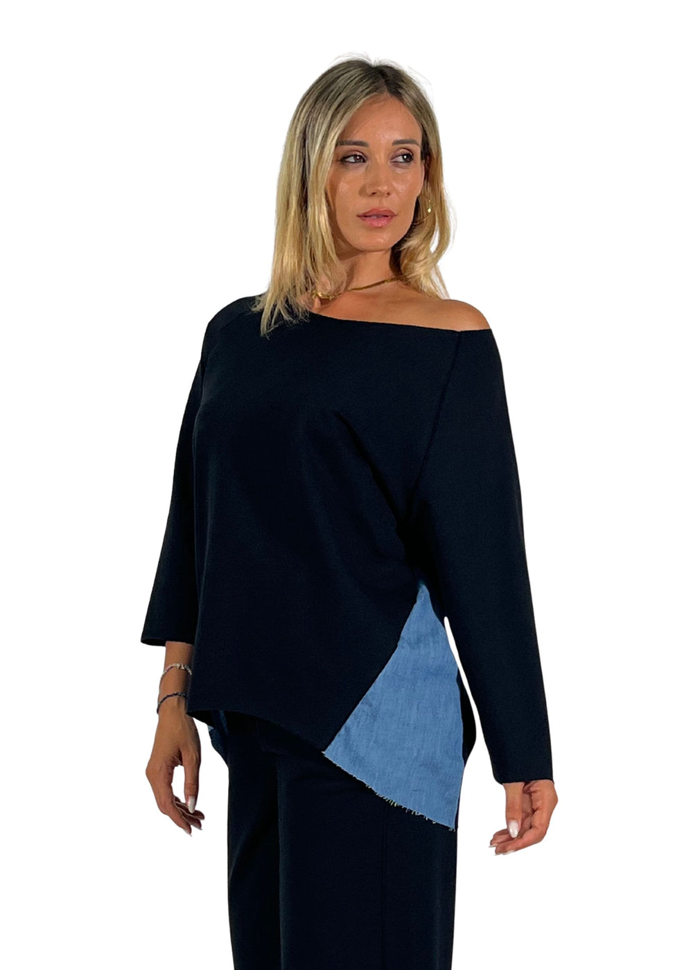 • Dettaglio unico: Parti laterali in denim blu scuro a contrasto