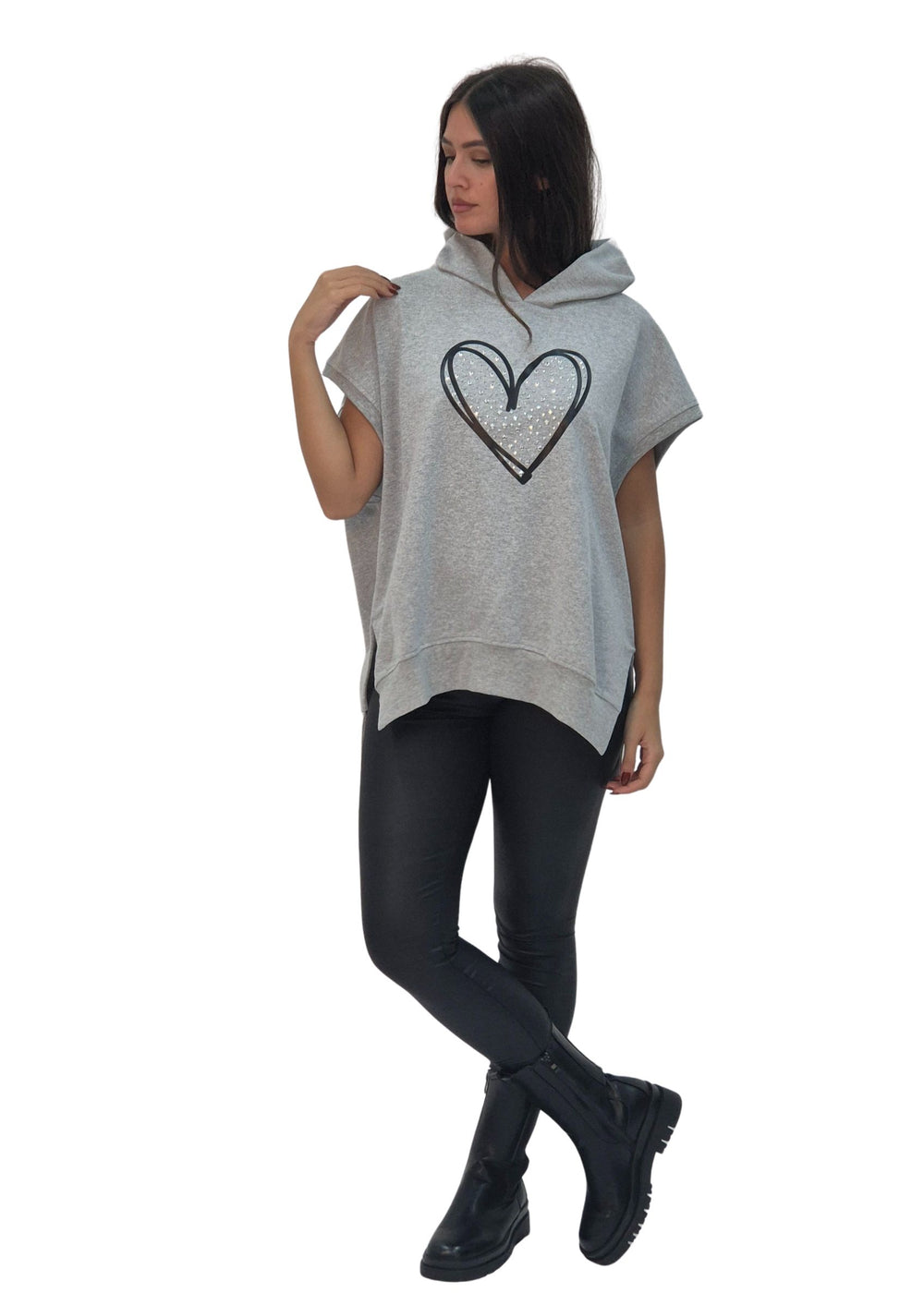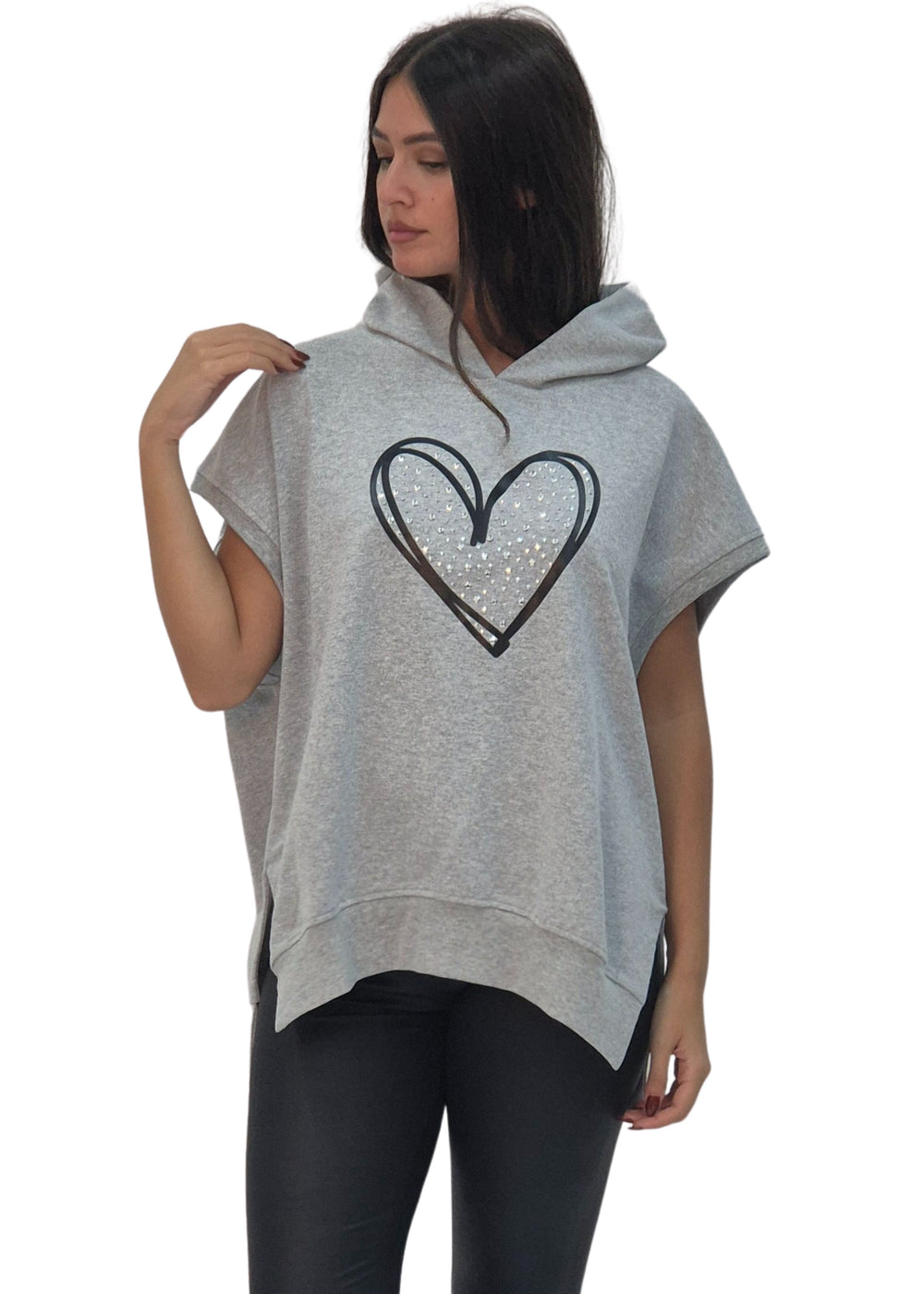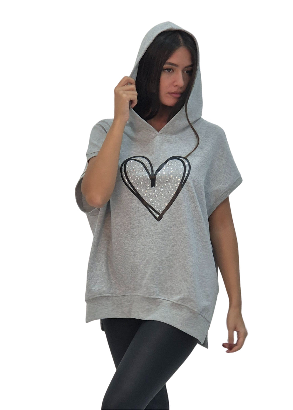 • Stampa con cuore centrale decorato da micro strass luminosi