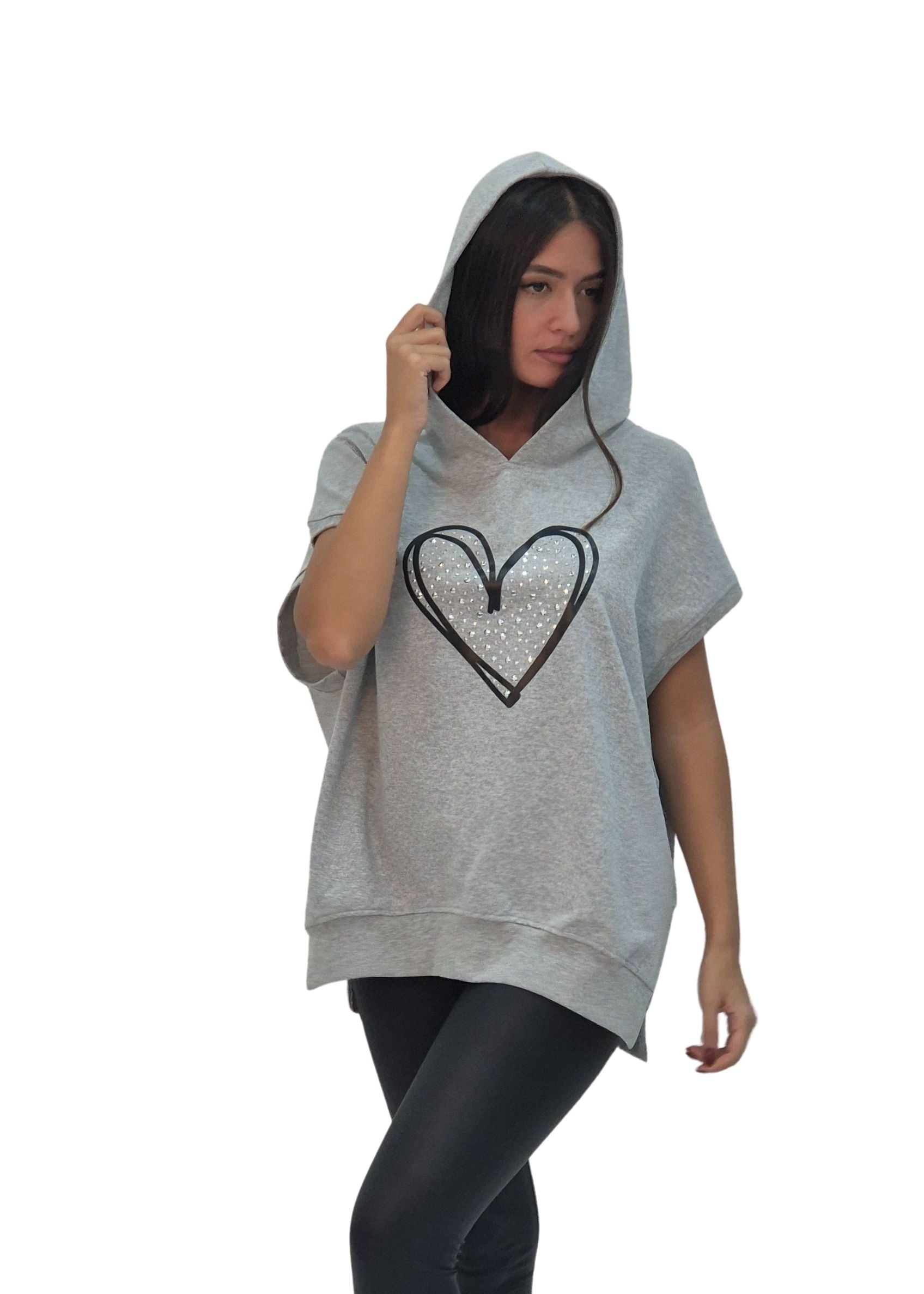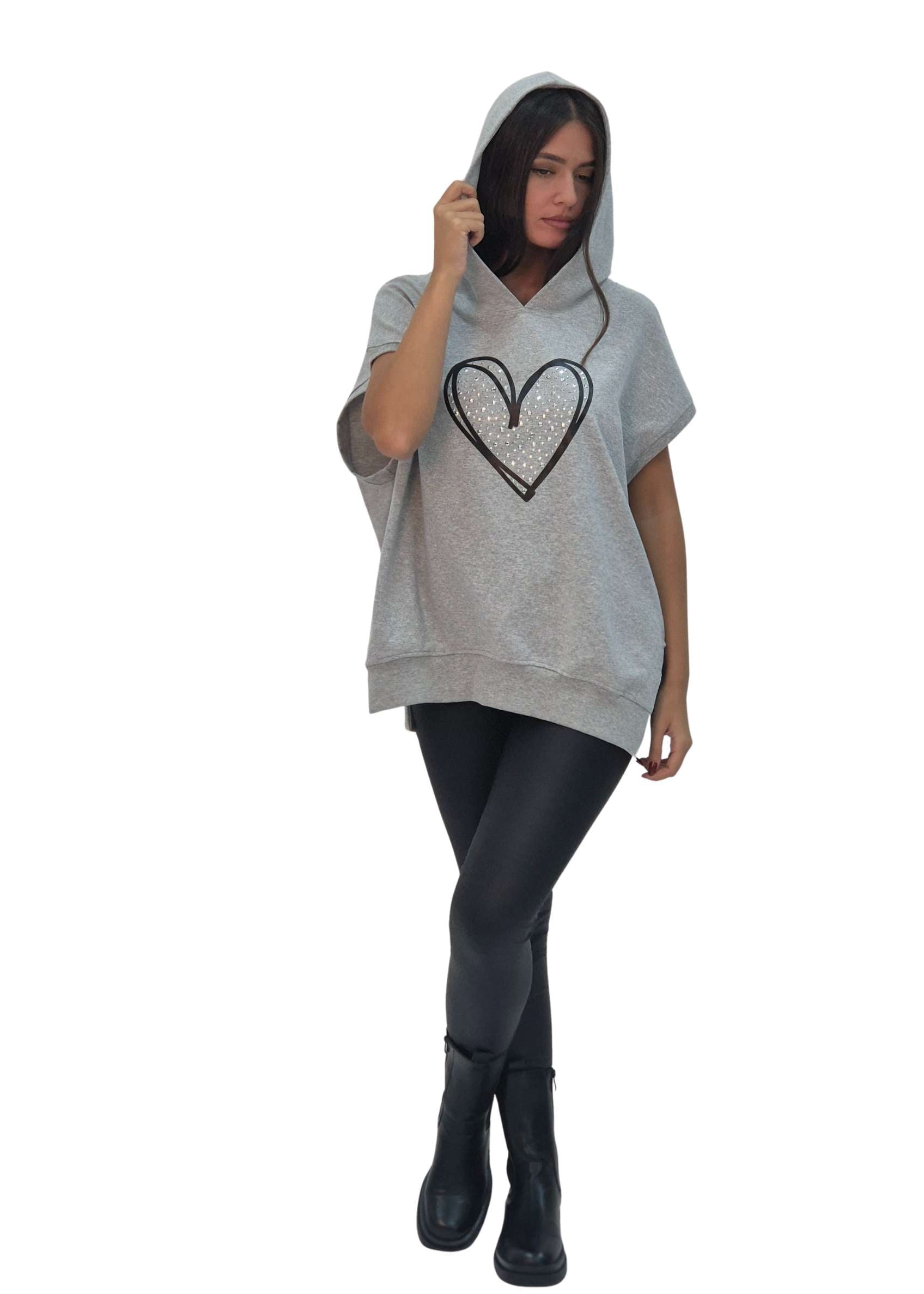 - Stampa con cuore centrale decorato da micro strass luminosi