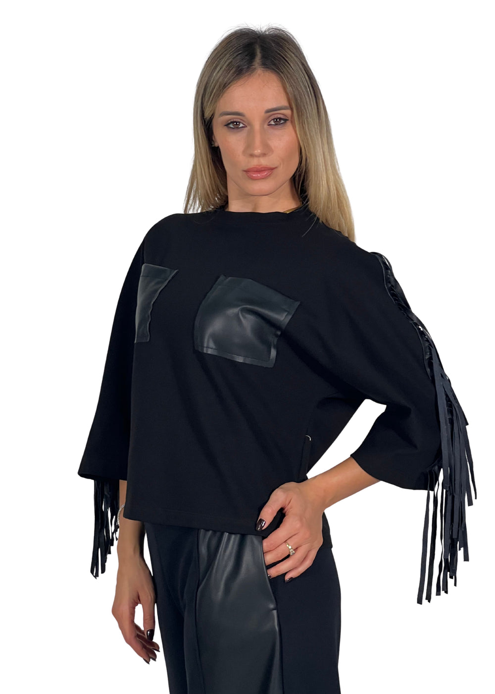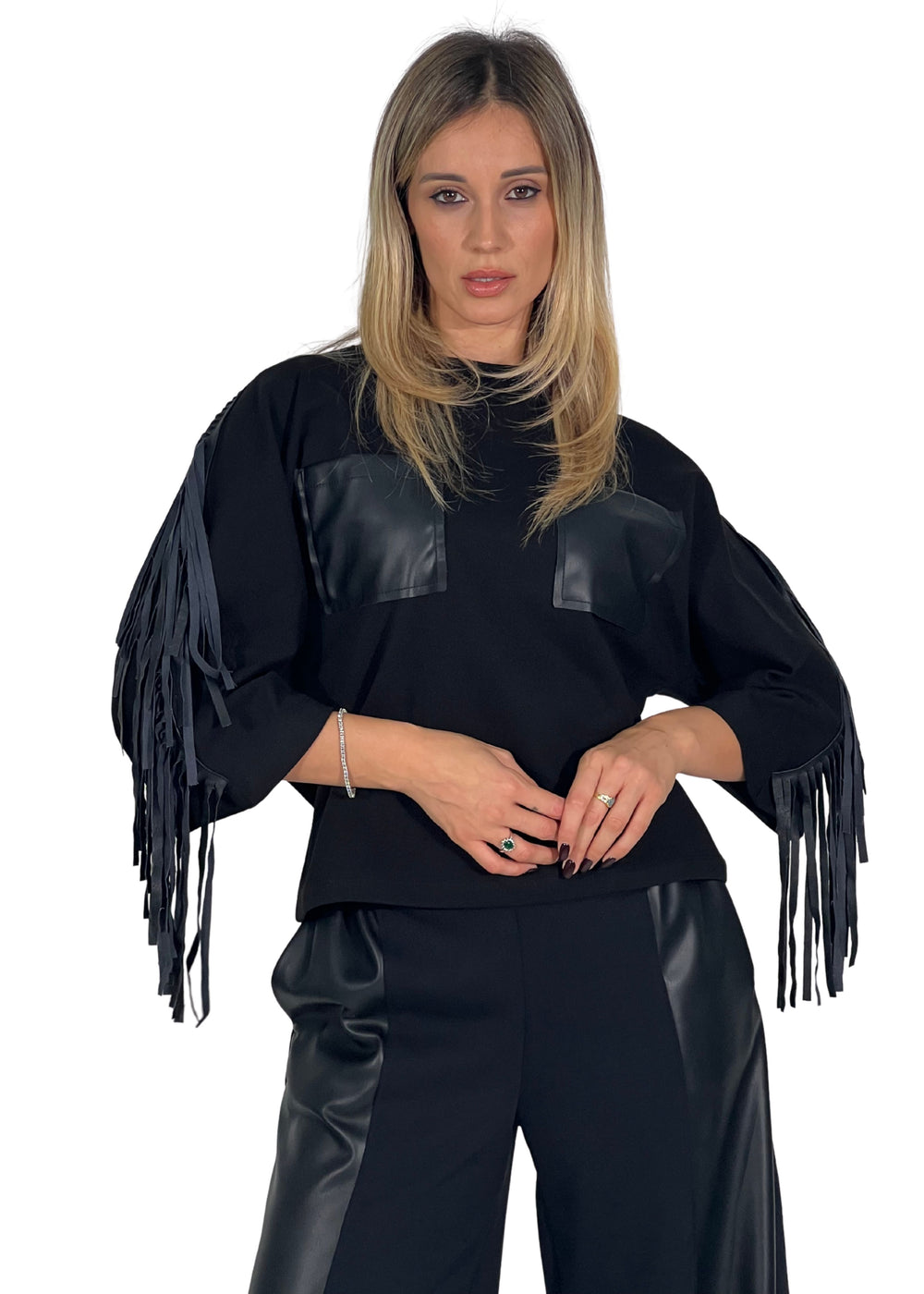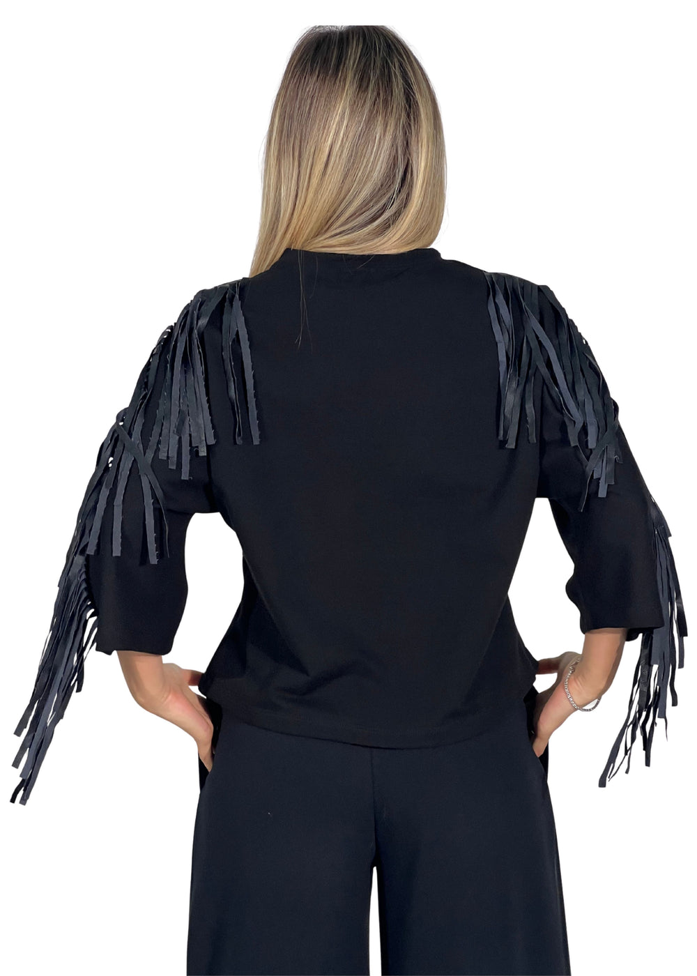• Maniche: 3/4 con frange lunghe laterali in ecopelle