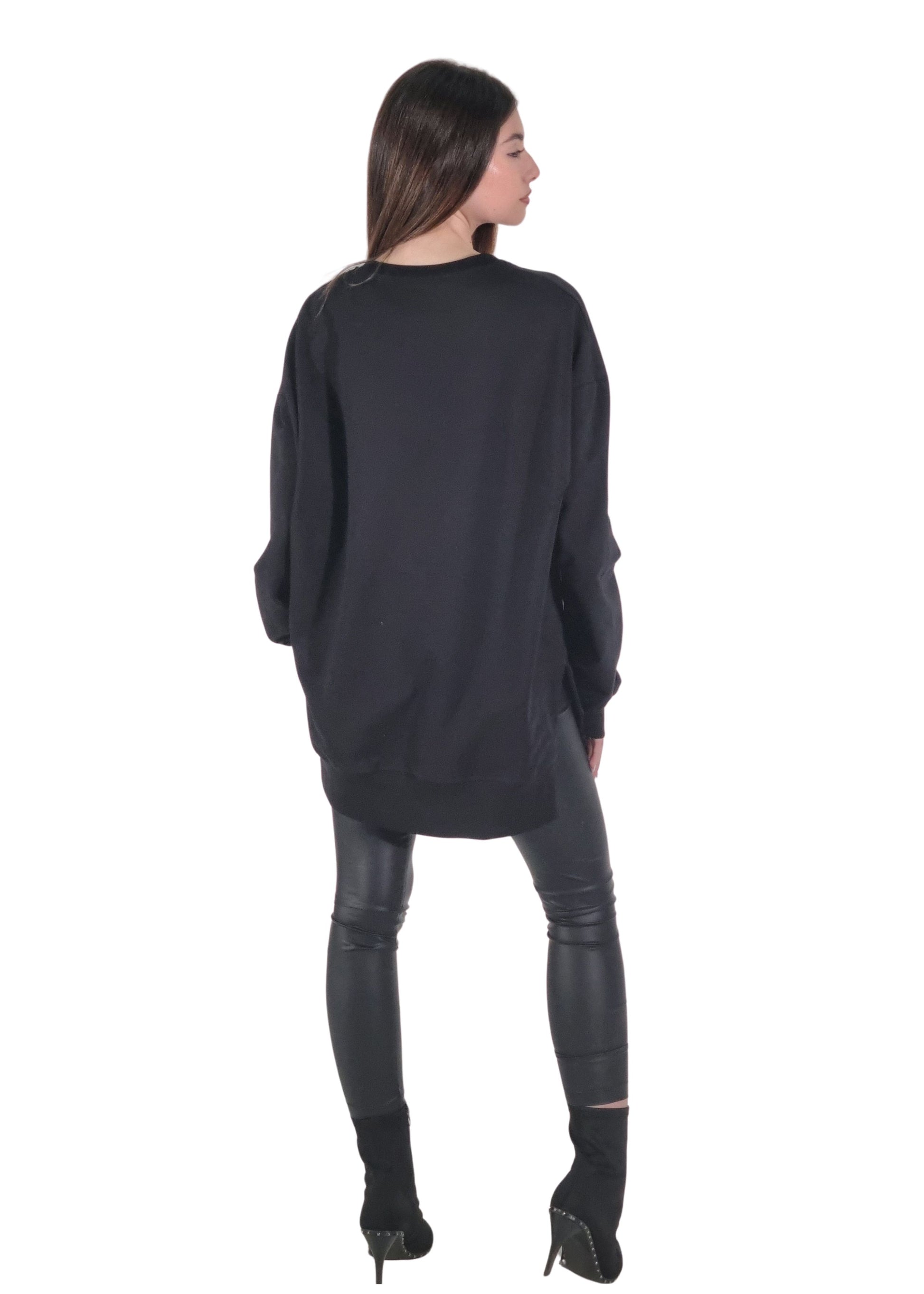 - Felpa nera in morbido cotone con vestibilità over