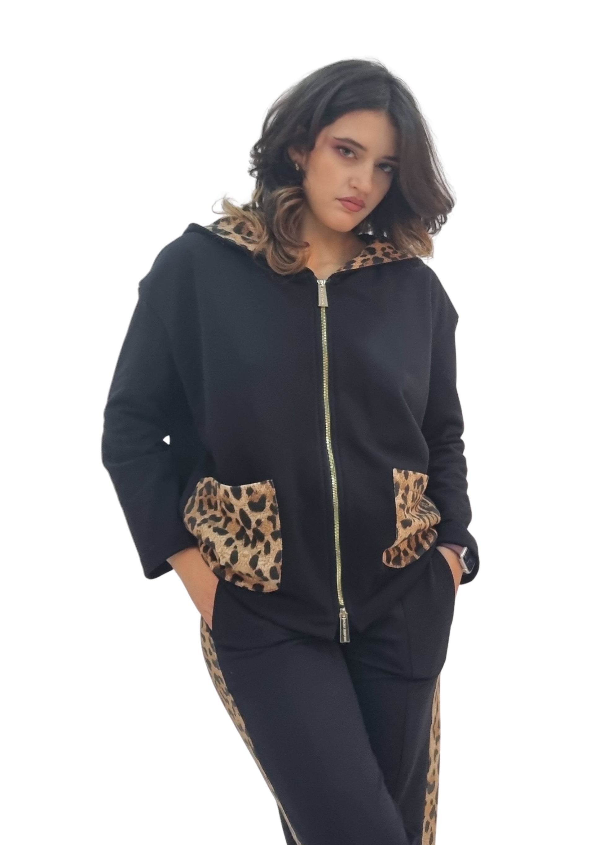 - Dettagli: inserti animalier su cappuccio e tasche frontali per un tocco di carattere