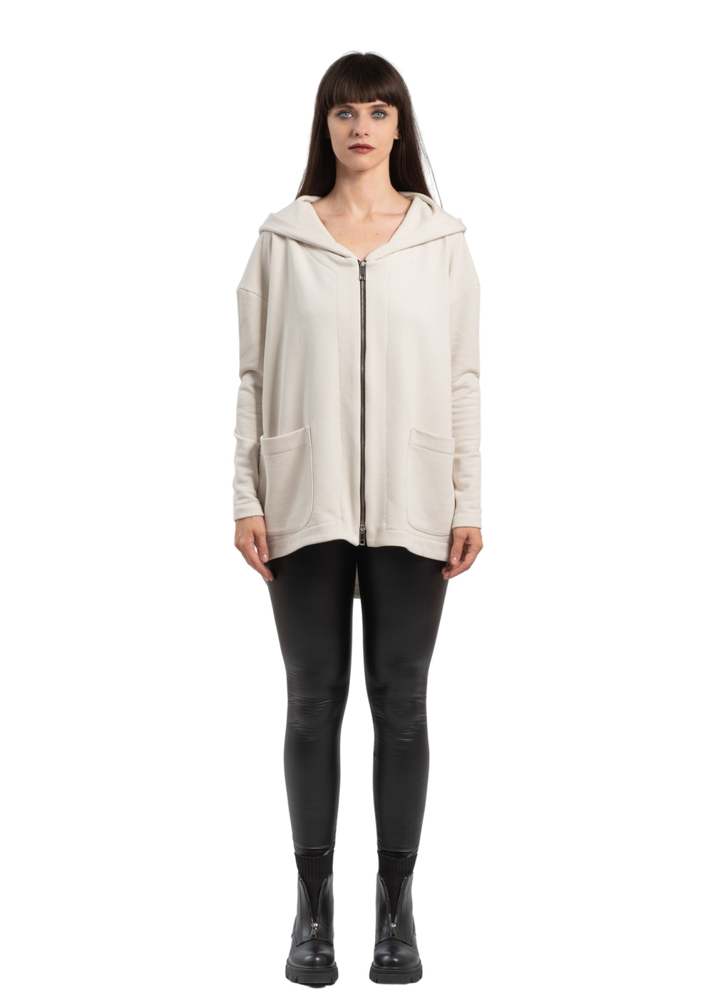 • Chiusura frontale con zip a doppio cursore, pratica e versatile
