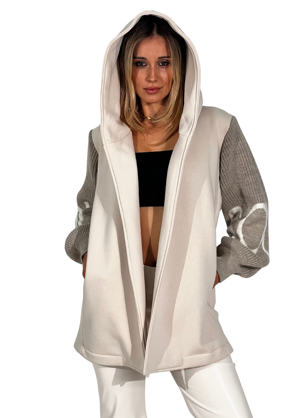 • Dettaglio : maniche in lana a contrasto, calde e sofisticate