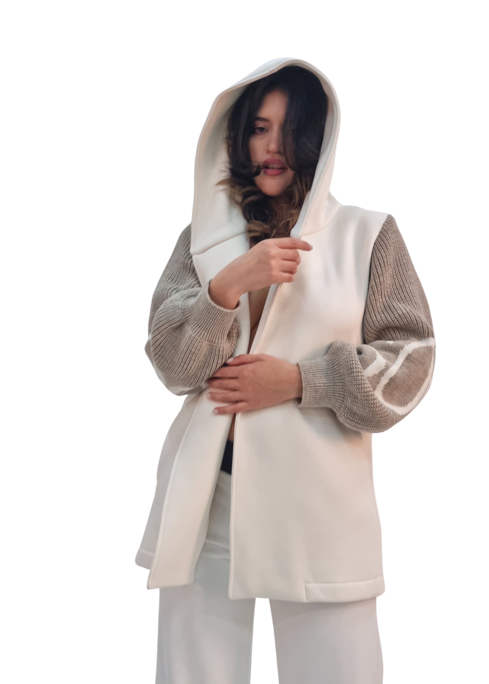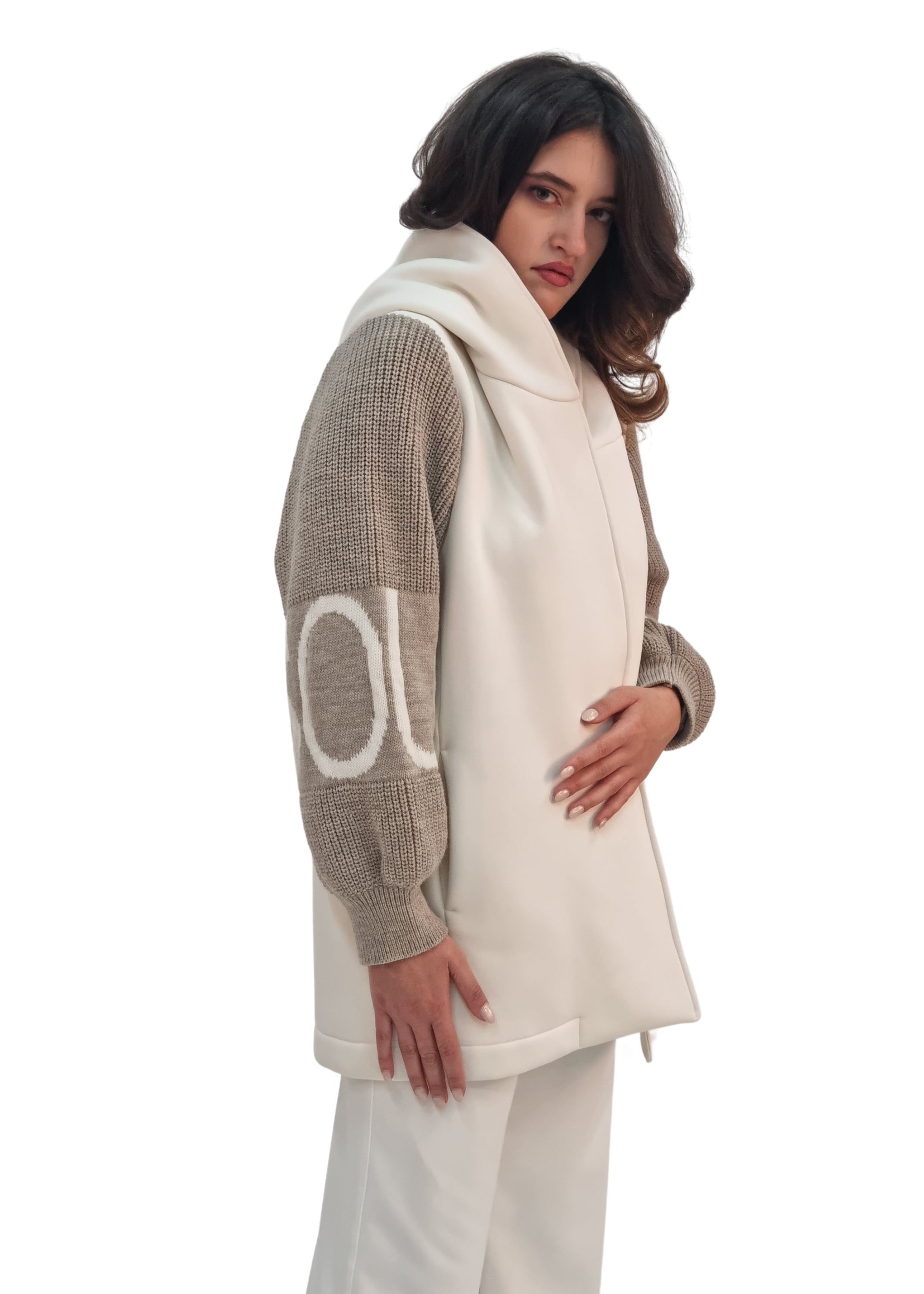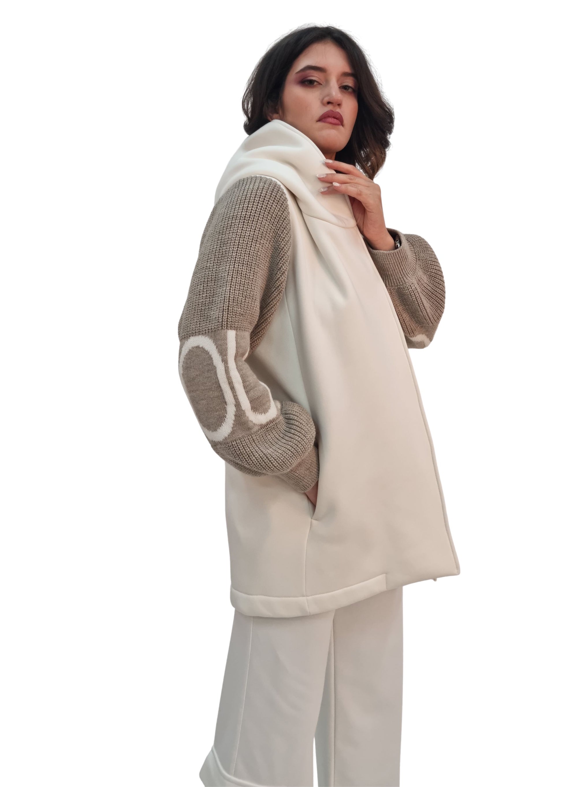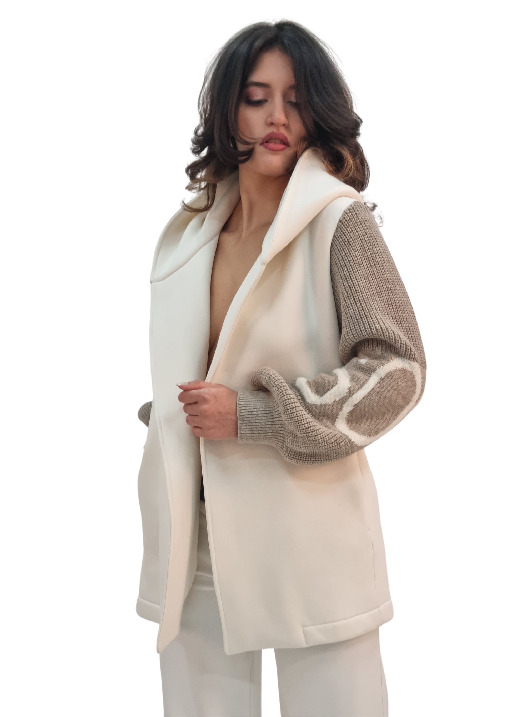 - Dettaglio : maniche in lana a contrasto, calde e sofisticate