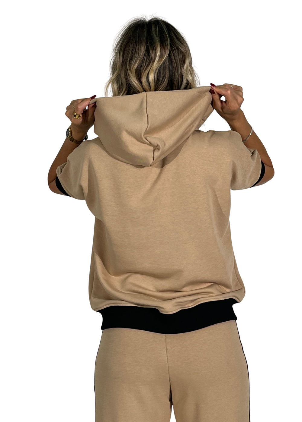 • Modello con cappuccio e zip frontale in metallo dorato a doppio cursore