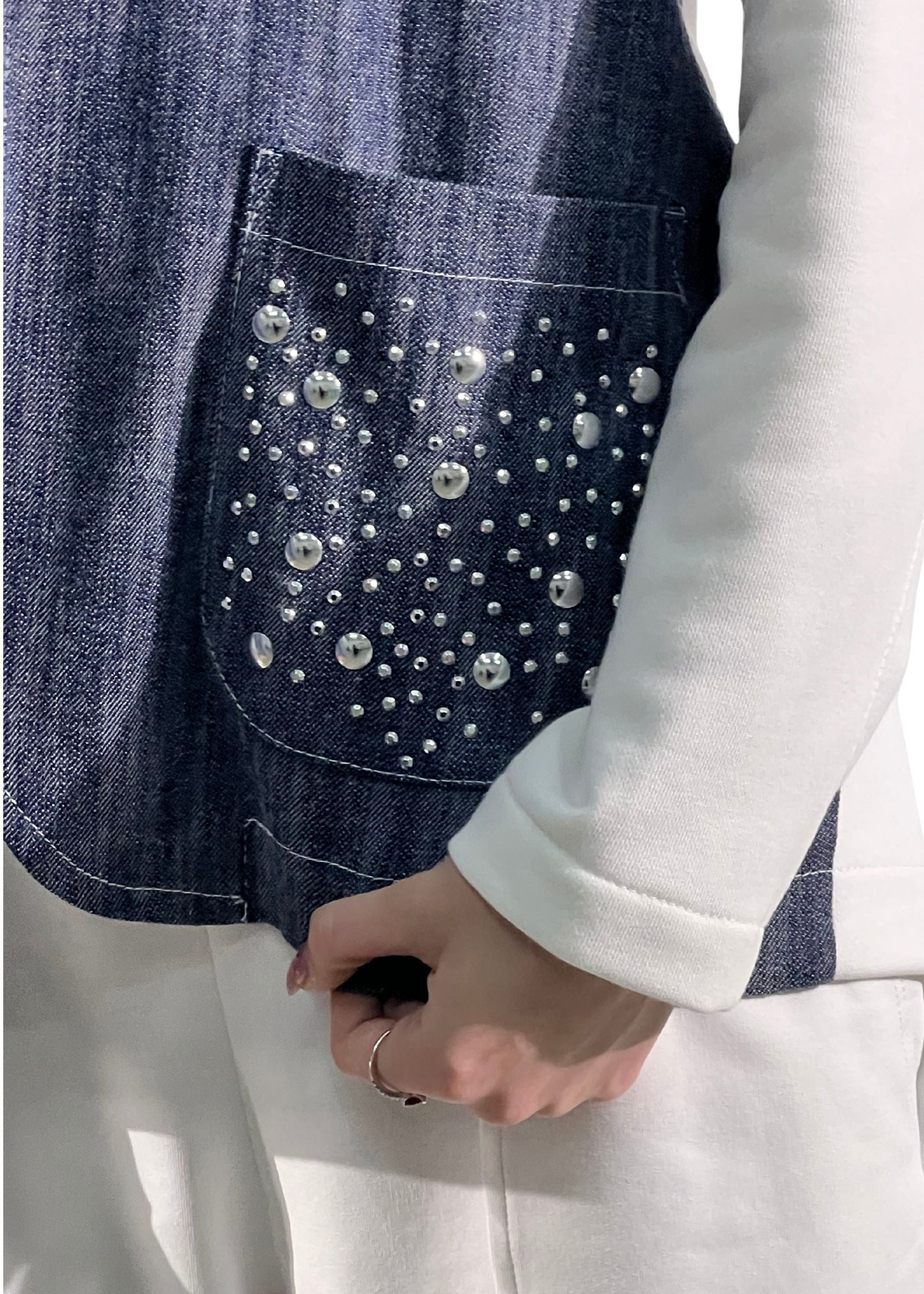 - Dettagli : Tasche frontali con applicazioni di strass per un tocco di luminosità