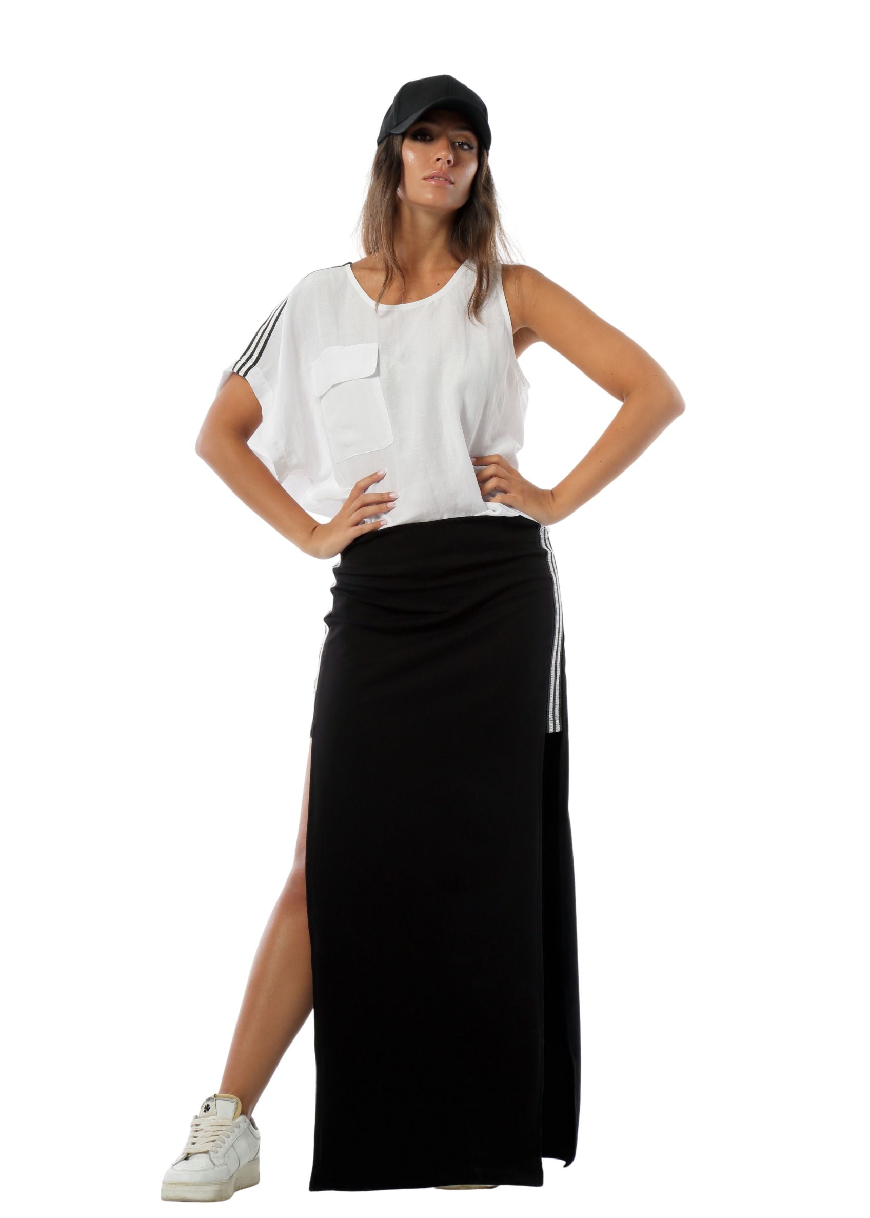 - Gonna Lunga con Spacchi Laterali ed Elastico in Vita