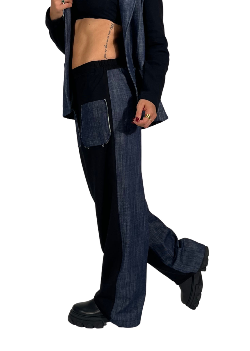 • Design bicolore: felpa nera e denim blu a contrasto per un effetto moderno e deciso.