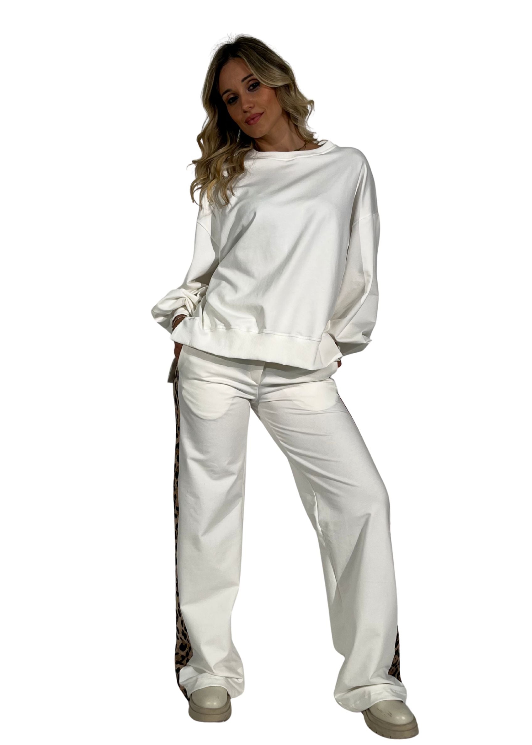 - Modello: pantalone in felpa, linea comoda