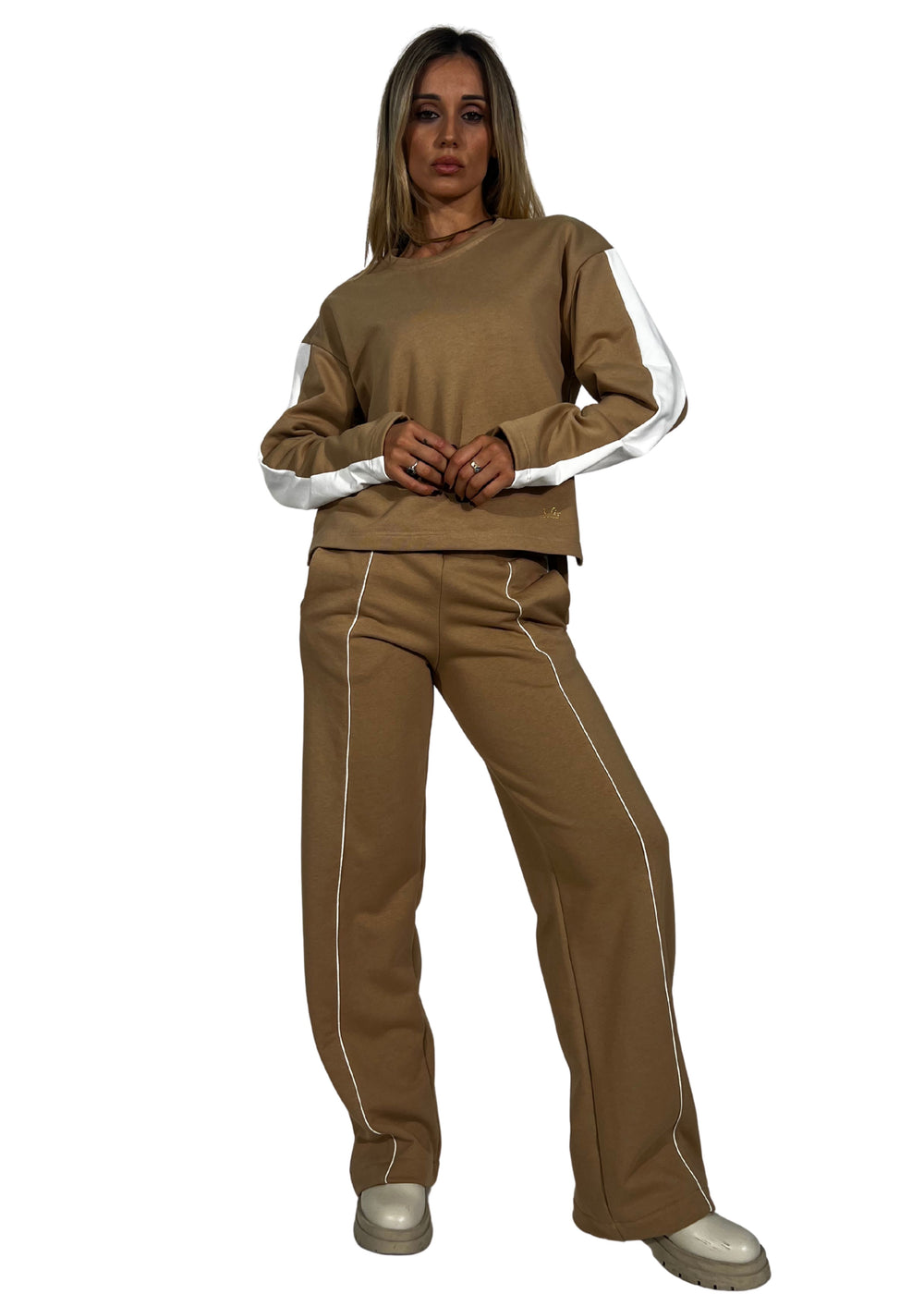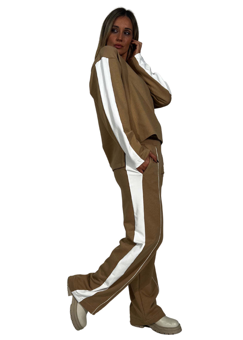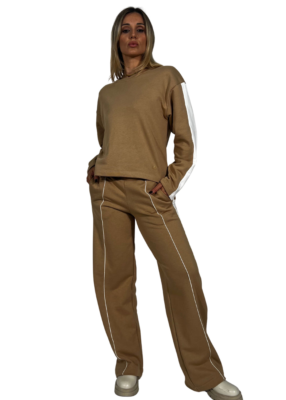 • Design moderno con banda bianca a contrasto su maniche e pantaloni.