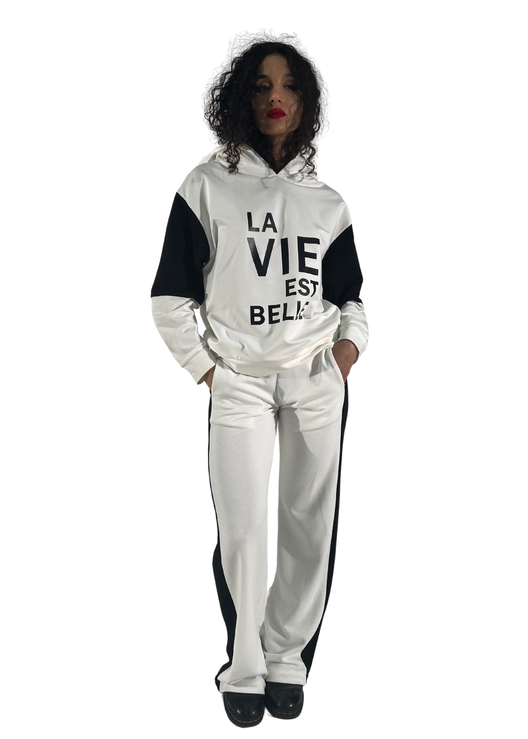 - Scritta frontale “La vie est belle” per un tocco trendy.