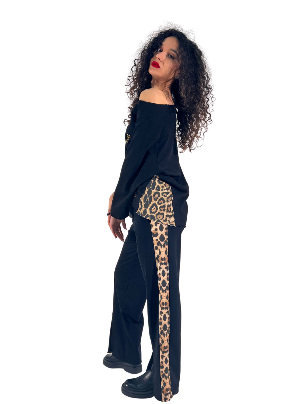 • Banda laterale con fantasia leopardata, per un dettaglio trendy e deciso.