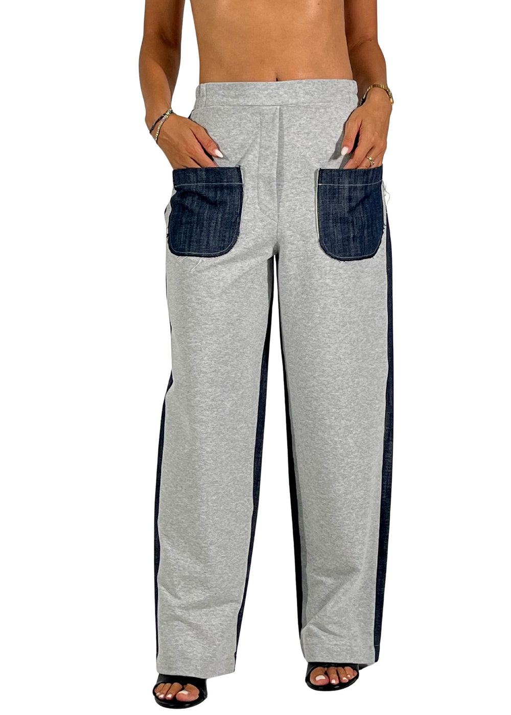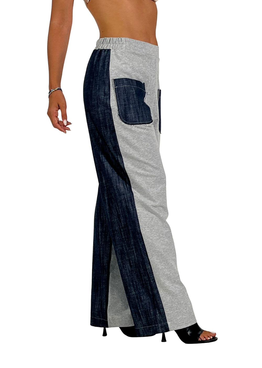 Retro con inserto in denim lungo la gamba per un effetto a contrasto